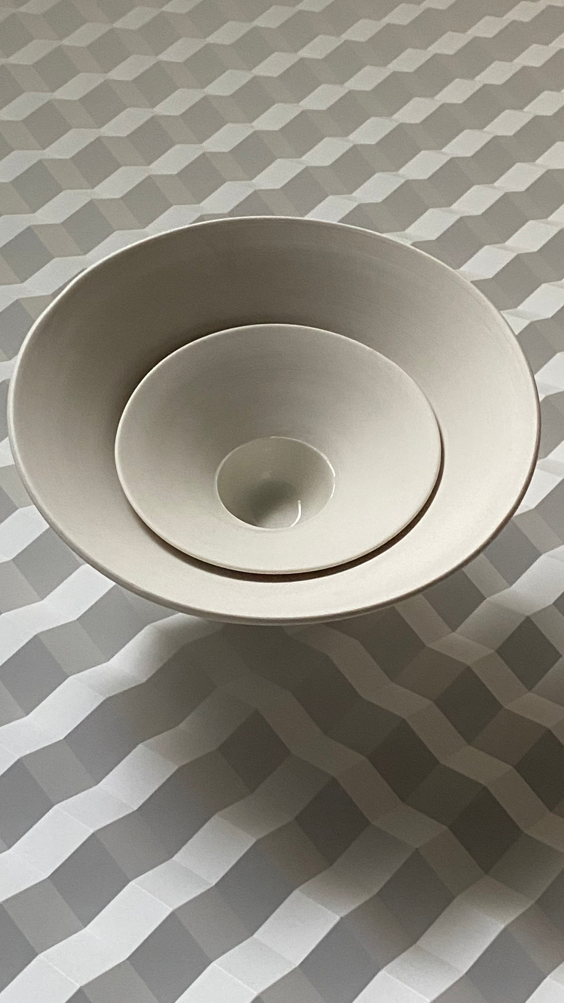 Bol en porcelaine Ming, tourné à la main. Le bassin est émaillé et l’aile brute, mais poncée délicatement.