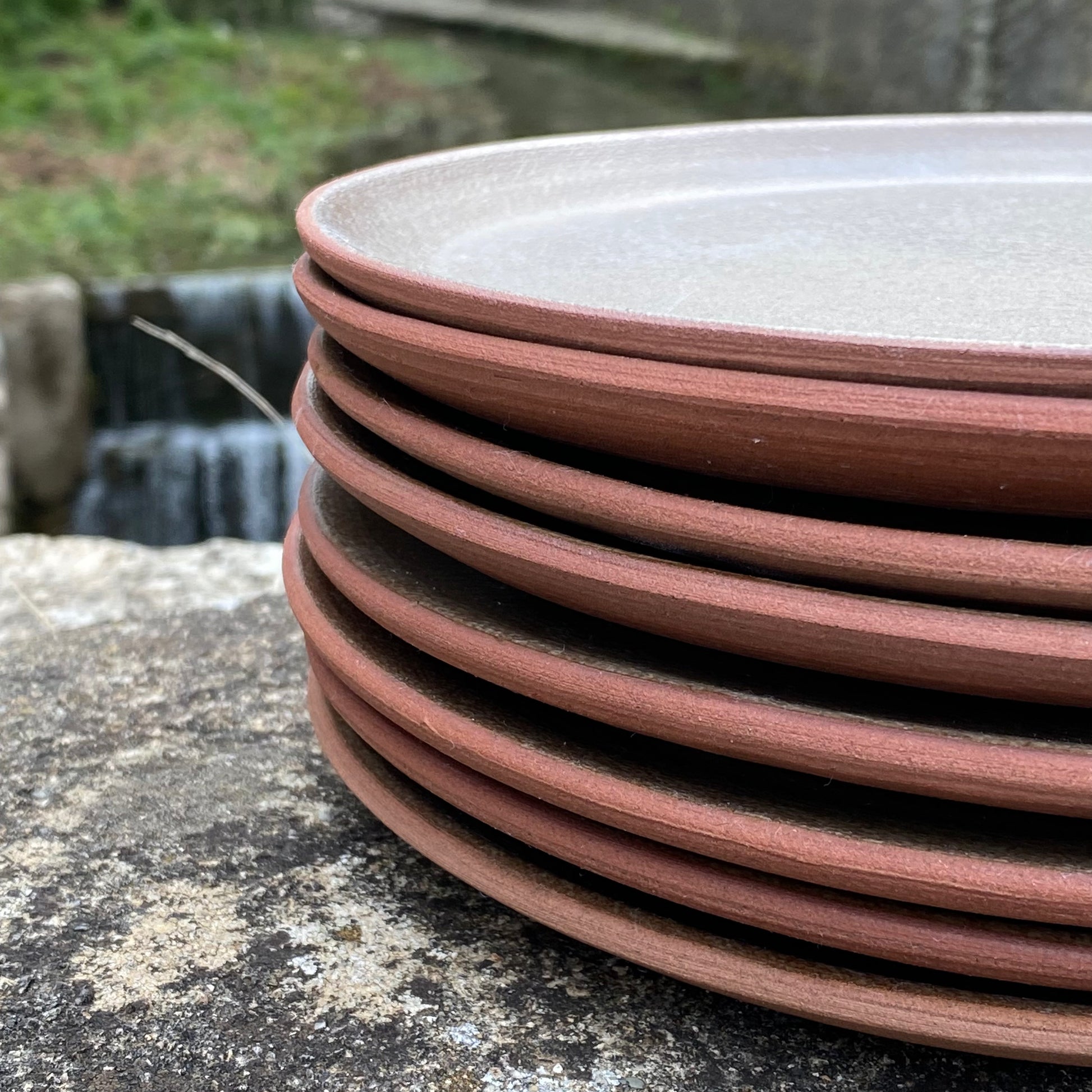 Faites à la main, ces assiettes de présentation peuvent se décliner sous une assiette Avène ou Lavogne. Elles sont en terre rouge comme les schistes. Emaillées mat.