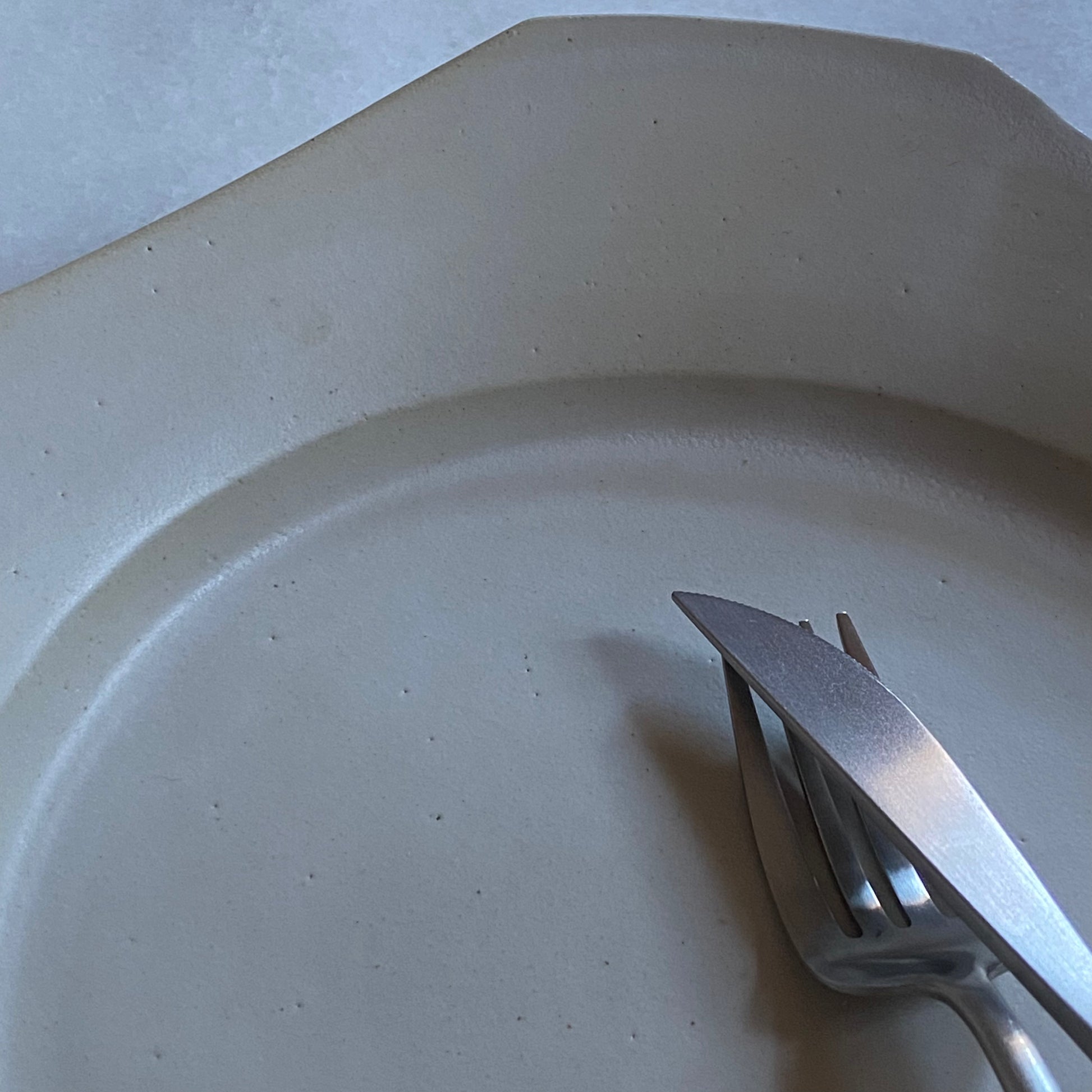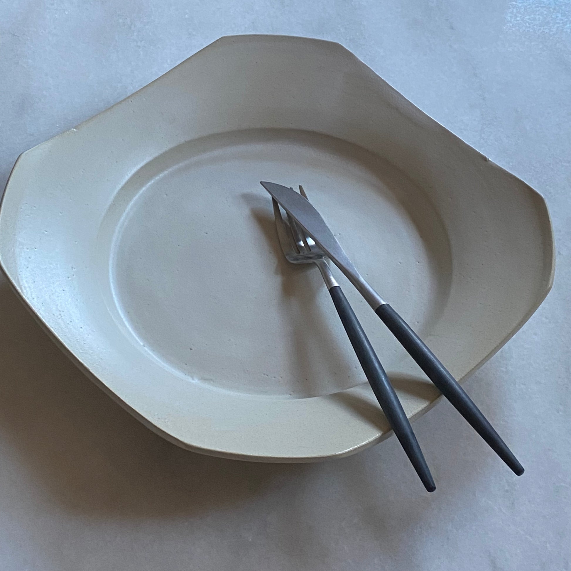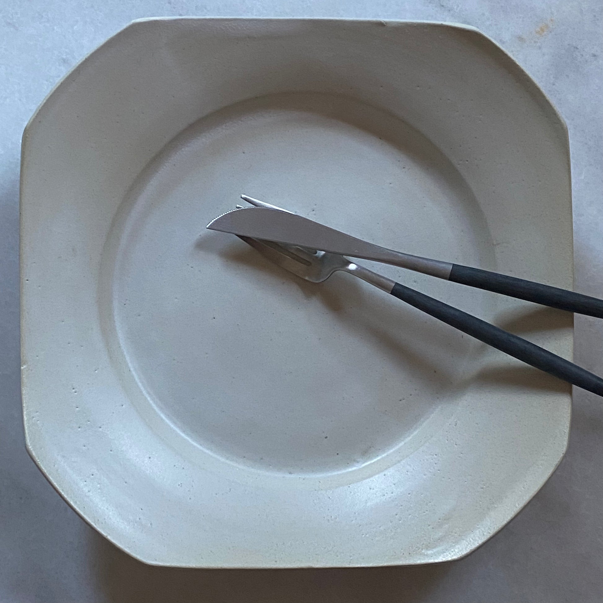 Grande assiette en grès de saint-amand, ronde et carrée pour réconcilier la cuisine moderne avec la sobrieté d'une assiette, grande et universelle.